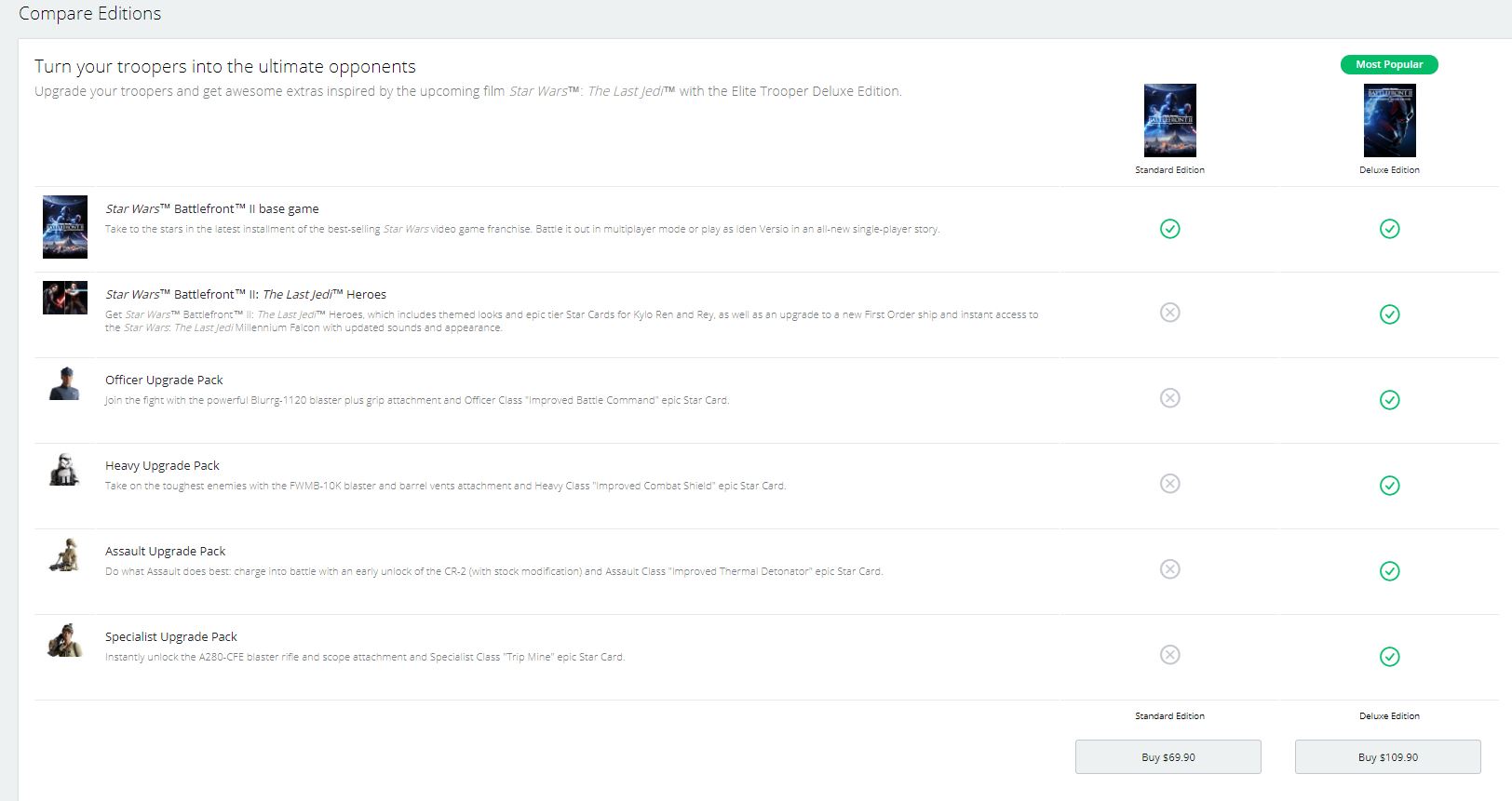 Banyak yang beranggapan bahwa dengan dimatikannya Microtransactions, maka sudah selesai semua kekhawatiran untuk Pay to Win Star Wars Battlefront II. Benarkah demikian? Tunggu dulu, masih ada satu sistem yang masih belum terselesaikan dan jarang dibicarakan orang. Percaya atau tidak, sistem Pay to Win tersebut masih ada. Di mana? Ada di paket penjualan awal dimana EA memutuskan untuk membagi penjualan Star Wars Battlefront II tersebut ke dalam beragam paket yang ada. Anda membeli yang Standard Edition, yang notabene merupakan versi biasa? Anda tidak akan mendapatkan apapun. Anda berniat membeli versi lebih mahal – Deluxe Edition, Anda akan langsung disuguhi begitu banyak konten yang mempengaruhi performa gameplay. Versi Deluxe Edition ini akan memberikan Anda daftar panjang ini: Officer Upgrade Pack, Heavy Upgrade Pack, Assault Upgrade Pack, dan Specialist Upgrade Pack. Belum cukup? Beli versi Elite Edition yang lebih mahal lagi, dan ditambah dengan semua Pack tersebut, Anda akan mendapatkan konten Hero Cards langka pula untuk Kylo Ren dan Rey yang semakin sakti dengannya.