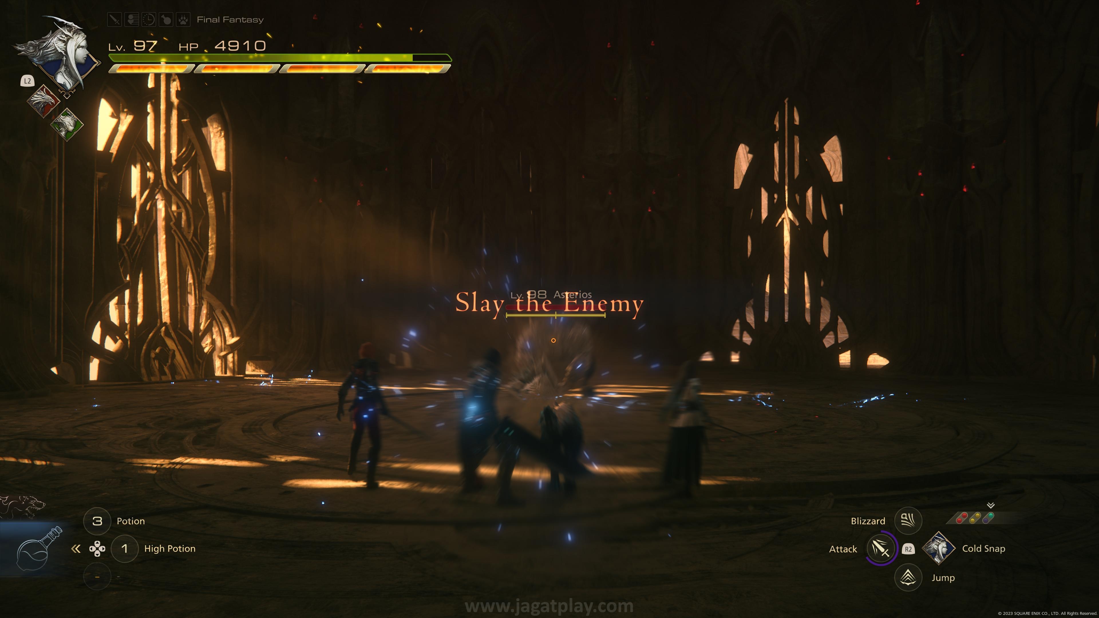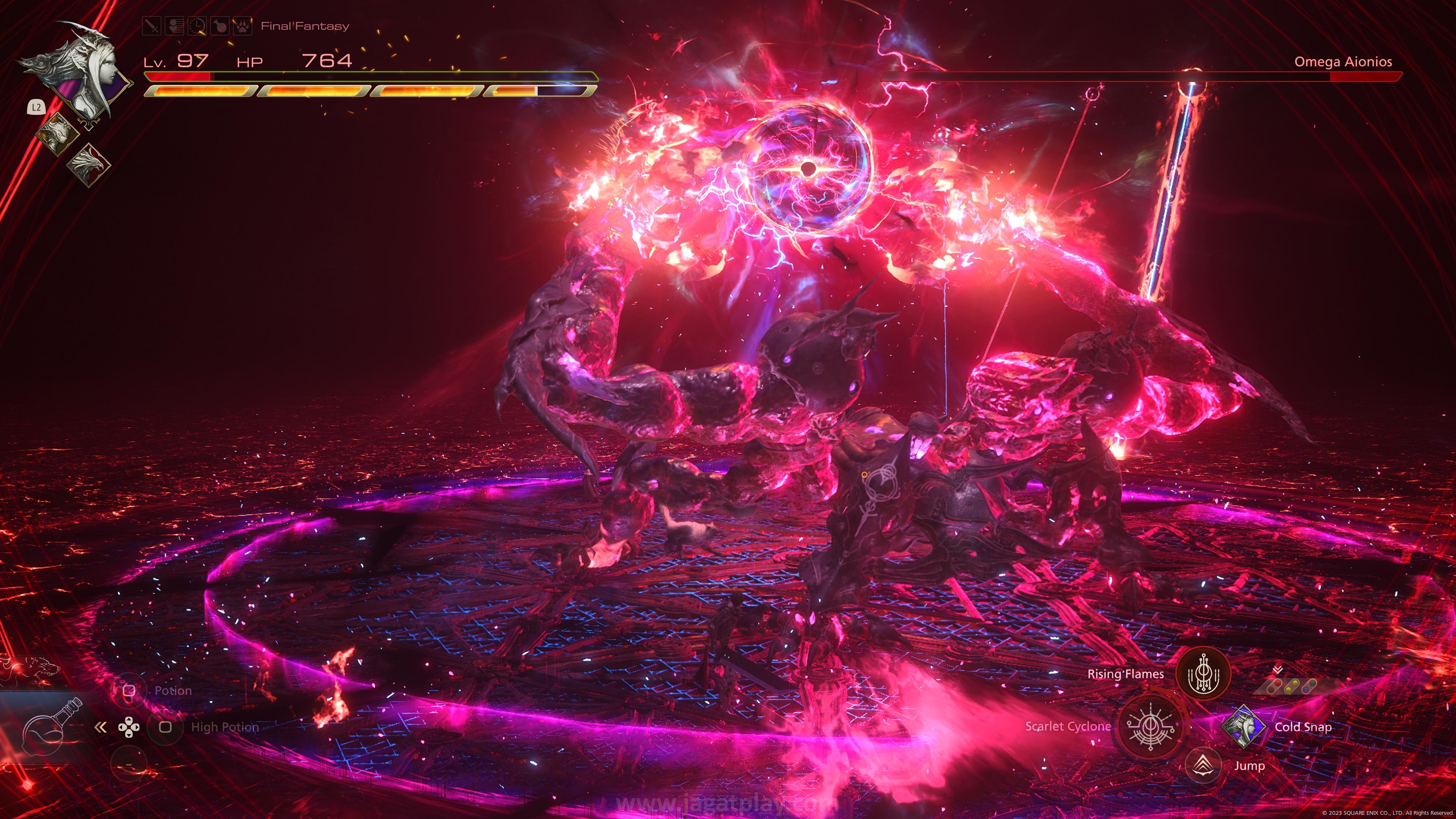 OMEGA akan menantang Anda dengan banyak serangan fisik dekat dan area berbasis energi yang seperti bisa diprediksi, akan menyibukkan Anda untuk terus menghindarinya di timing yang tepat. Maka seperti tipikal boss game JRPG yang seharusnya pula, ia juga akan dibagi ke dalam beberapa fase, dimana semakin terkuras HP yang ia miliki, semakin banyak pula jenis serangan berbasis area luas dengan damage menyakitkan disertakan. Ditambah dengan kebutuhan menyesuaikan diri di awal jika Anda sudah sempat rehat menikmati Final Fantasy XVI, ini bukanlah pertarungan yang mudah. Kami sendiri tidak malu mengakui bahwa kami harus melewati beberapa kali layar Game Over untuk menundukkannya. Berita baiknya? Bahkan di tingkat kesulitan Final Fantasy sekalipun, Anda akan mengulang kembali dari fase terakhir Omega dimana Anda kalah dan tidak harus mengulangnya kembali dari awal.